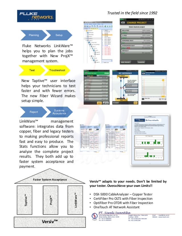 - Deliver professional, customized,graphical reports in a common format for Fluke Networks copper and fiber testers